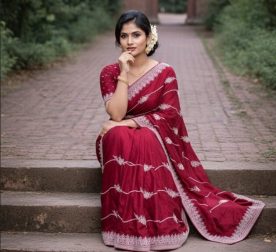 Exclusive 4-in-1 Combo Set for any Occasion – সুতি শাড়ি, গয়না, পারফিউম ও ২২ কালারের মেকআপ বক্স