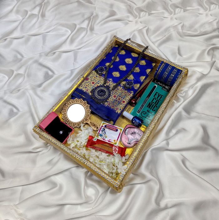 Exclusive 4-in-1 Combo Set for any Occasion – সুতি শাড়ি, গয়না, পারফিউম ও ২২ কালারের মেকআপ বক্স